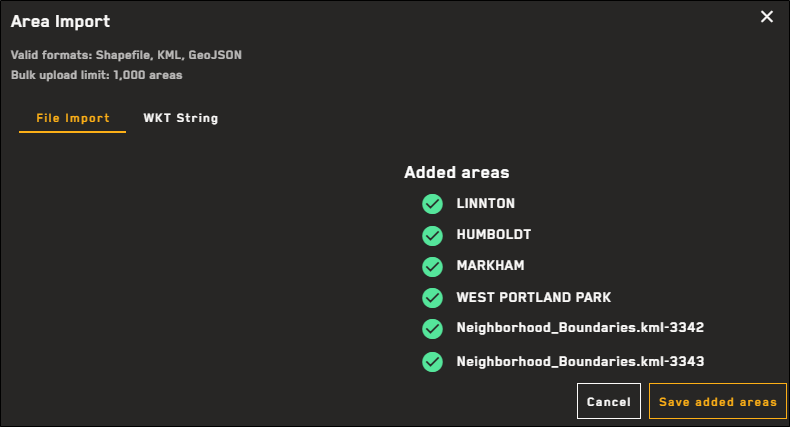 If you already have an area defined using a shapefile, KML, GeoJSON, or WKT, you can import it into Rapid Access.
