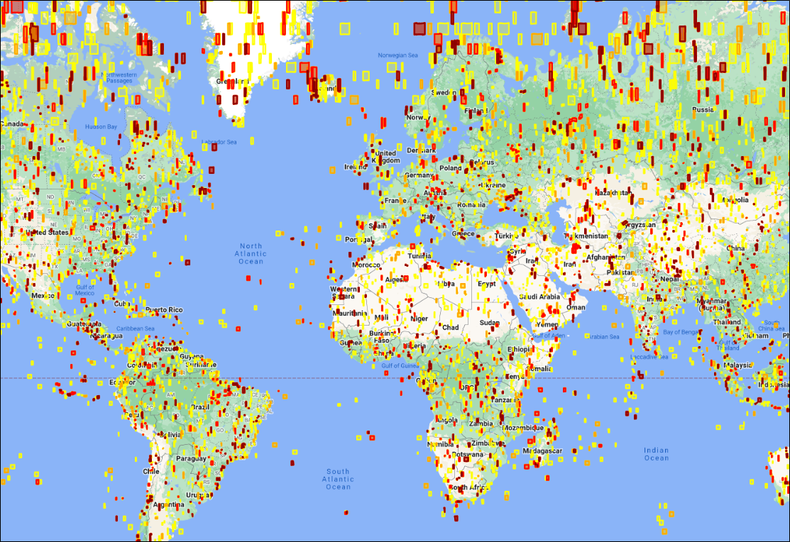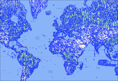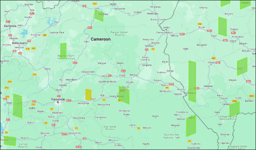 Imagery footprints serve as an inventory layer for imagery acquisitions over time. Imagery footprints are visible at all zoom levels so you can quickly assess an area at high altitude to see if imagery is available. You can view imagery footprints for individual years from 2008–2022, or for shorter time frames ranging from the last year to the last 24 hours.